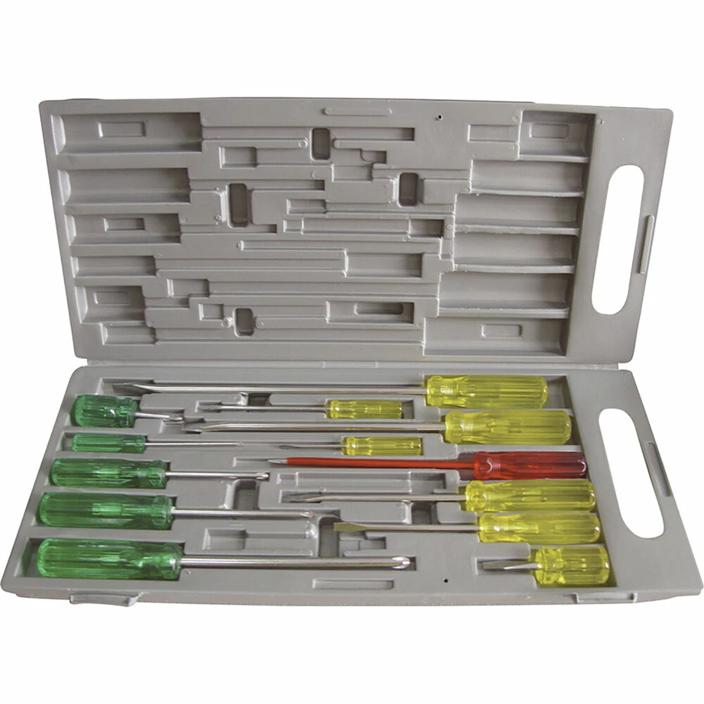 A great general screwdriver set, this 13 piece screwdriver set by SCAcontains screwdrivers with carbon steel blades that are fully hardened and chrome plated for added durability. If you need reliable screwdrivers to use around your house, this set has all the basics you might require.