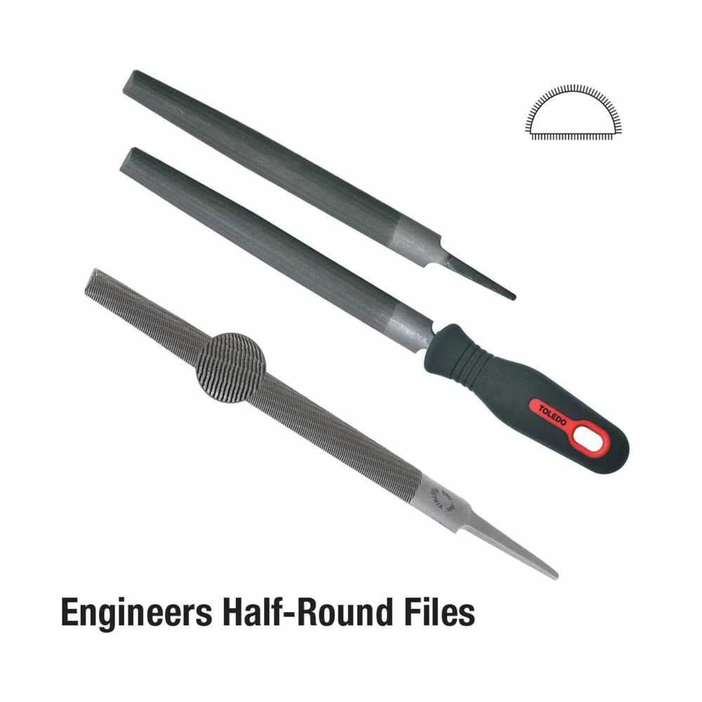 - Type: Individual half round file supplied with ergonomic dual component plastic and rubber handle